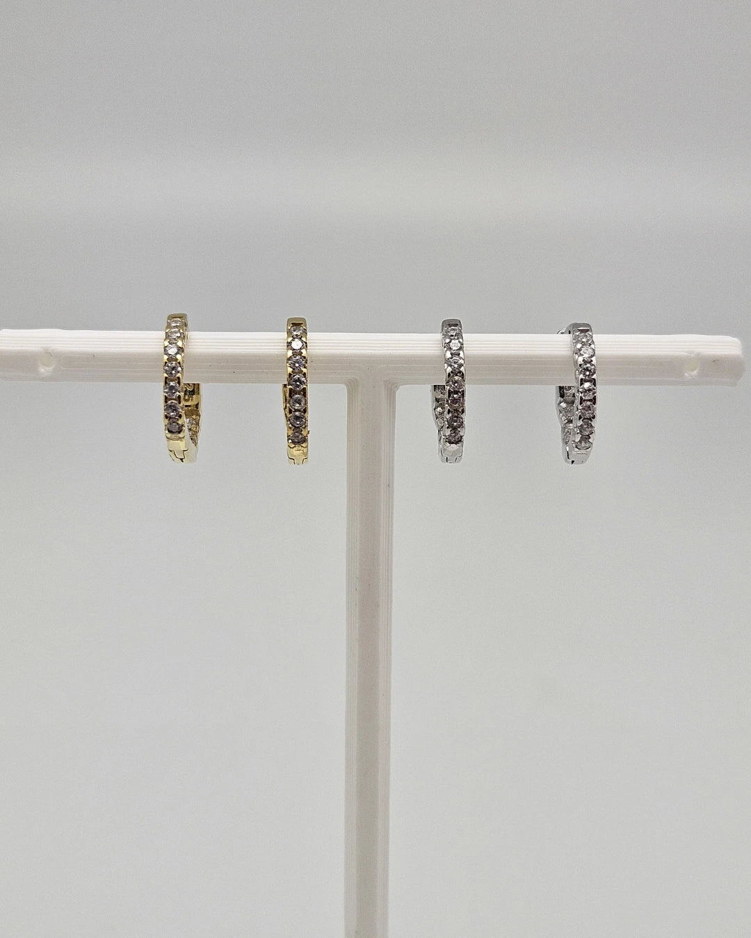 Anita is your everyday essential—with a sleek twist. This petite huggie features a secure safety clip clasp for all-day comfort and confidence, and a slim 1.7mm profile that hugs just right. With a 14mm outer diameter and 9mm inner, she’s the kind of subtle sparkle you’ll reach for again and again.
