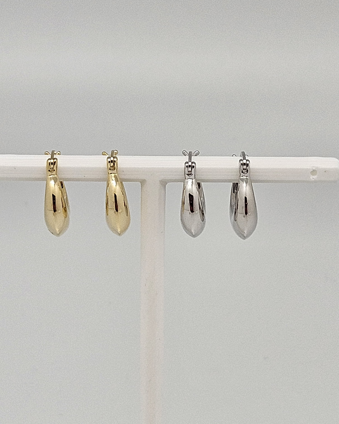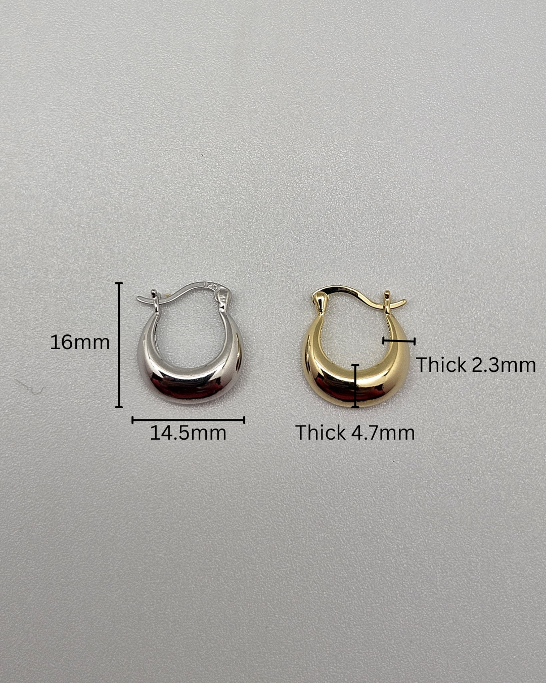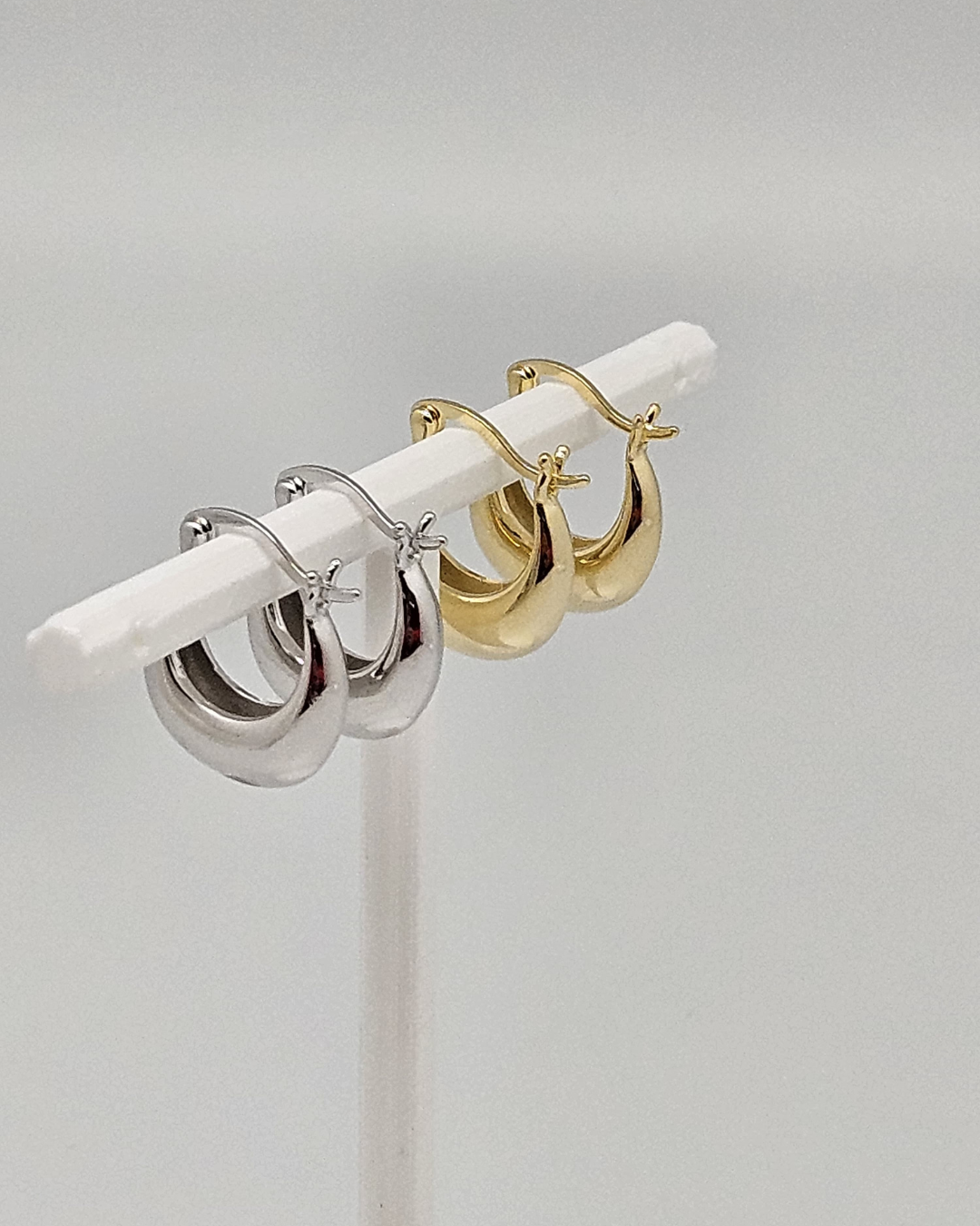 With a smooth round-bottom Creole shape and high-polish finish, these hoops strike the perfect balance between bold and classic. The secure pin-and-catch closure makes them easy to wear all day, every day. Available in radiant gold or timeless silver, Natalie adds just the right touch of shine—whether you're dressing up or keeping it casual.