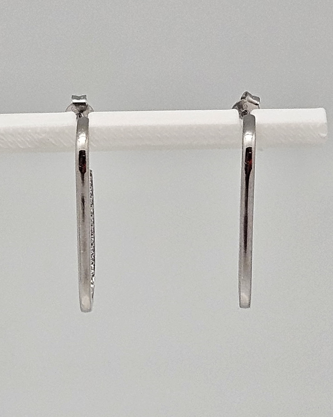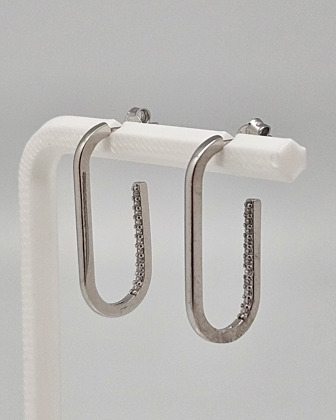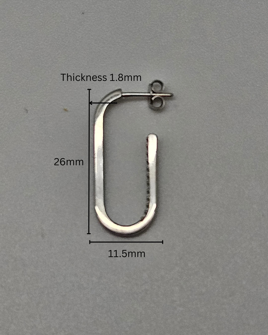 This sleek 26mm oval hoop features a pin-and-butterfly back and a slender 1.8mm profile—but it’s the unexpected sparkle that sets her apart. A discreet row of cubic zirconias is tucked along the inner back curve, catching light with every turn. Understated from the front, unforgettable from behind.